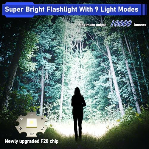 • Super Bright Flashlight: Equipped with the latest LED lamp beads, it can release up to 10000 lumens of brightness, and can easily illuminate a distance of 1500 metres, which is perfect for outdoor adventure and emergency lighting