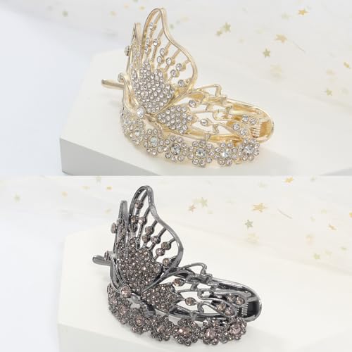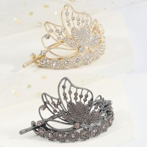2 Pcs Butterfly Hair Clips for Women | Sparkling Created Crystal Hair Clips Strong Hold Flat Hair Pins for Women | Flat Clips Barrettes Girls’ Hair Styling Tool Accessories | Wedding Accessories