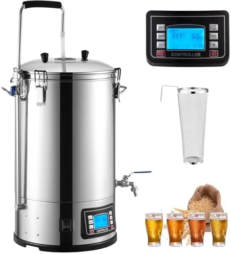 - 9.2 Gal/35 L Brewing Pot: This comprehensive brewing system simplifies the transition to all-grain brewing for homebrewers, eliminating the need for excessive equipment and costs. With a 9.2-gallon capacity, it can produce up to 8 gallons of premium beer. The inner pot, made from 0.02-inch-thick 304 stainless steel, is designed specifically for grain handling, ensuring durability and optimal performance for your beer recipes. Everything you need for brewing is right at your fingertips.