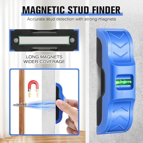 • Accurate Magnetic Stud Detection — This magnetic stud finder quickly locates nails and screws in drywall or wood using powerful magnets, ensuring accurate stud detection for reliable TV mounting, shelves, and framing