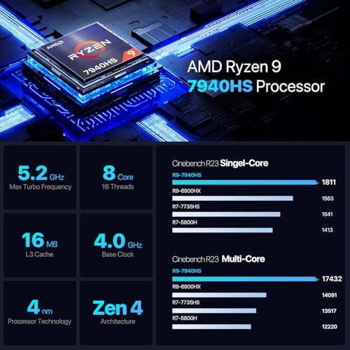 - ✔✔ Powerful AMD Ryzen 7 Processor —— Trycoo HA-4 Mini PC Comes with AMD Ryzen 9 7940HS (Up to 5.2GHz, 8C/16T, 16M cache) processor.The GPU is integrated with a powerful AMD Radeon 780M 12 Cores Graphics Card; AMD RONA 3 graphics architecture.It is widely used for AAA gaming, image editing(CAD, PS, Pr, Ai), office software, creative design, programming, and HTPC/Zoom meetings/Skype, etc.