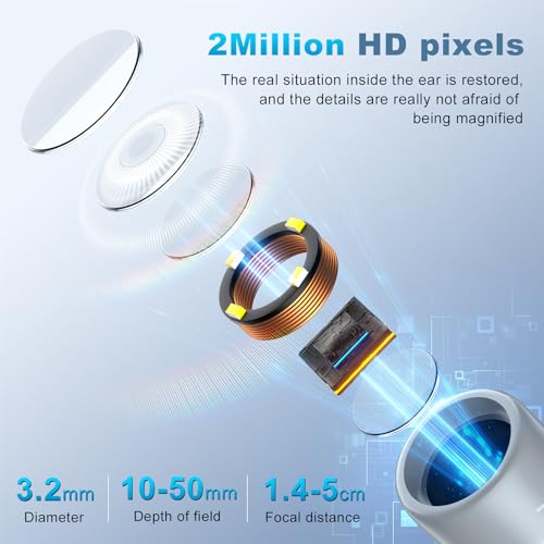 - 【Compact, Safe, and User-Friendly Design】Designed for convenience and safety, the ear camera is equipped with 4 LED lights and a slim 3.9mm lens, making it ideal for navigating the ear canal and assisting with wax removal. Its 90° foldable head provides added flexibility, making it simple to reach hard-to-access spots. The 4 adjustable brightness levels and magnification options ensure a comfortable and effective experience for all ages, including kids and pets
