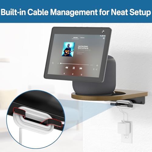 - Precision Fit for Echo Show 10: The wall mounting bracket is crafted exclusively for Alexa Echo Show 10 3rd Generation. Our wall mount shelf for Echo Show 10 stained oak veneer with matte black metal accents complements any décor. Unlike cheap plastic mounts, our wall bracket are much more durable and for longer service life, allowing your device to be securely mounted.(Note:Product only includes stand, no device)
