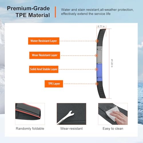 - Premium Material: Our mat replacement for 2021-2025 Ford Bronco hood shield is made of high quality TPE material, which is highly long-lasting even in extreme weather conditions. It is heat-resistant, wear-resistant and scratch-resistant. This material is not only incredibly strong, capable of withstanding the impact of flying rocks, gravel, and debris on the road, but also resistant to UV rays. Our mat can withstand all kinds of extreme weather, such as heavy rain or snowstorm days, etc.
