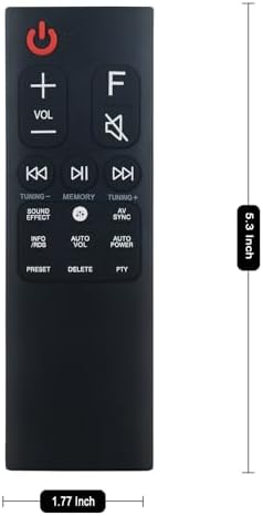 Replacement AKB75595312 Remote Control Commander Compatible with LG Soundbar No programming is required. Insert new alkaline batteries and works. Work for below models: SK1 SK6F SK10Y SK6 SK6Y SPK5-W SK9Y SK9 SK10 SK8 SK8Y This remote control use 2 x AAA size alkaline batteries. Package Content: 1X Remote Control(Battery not included)