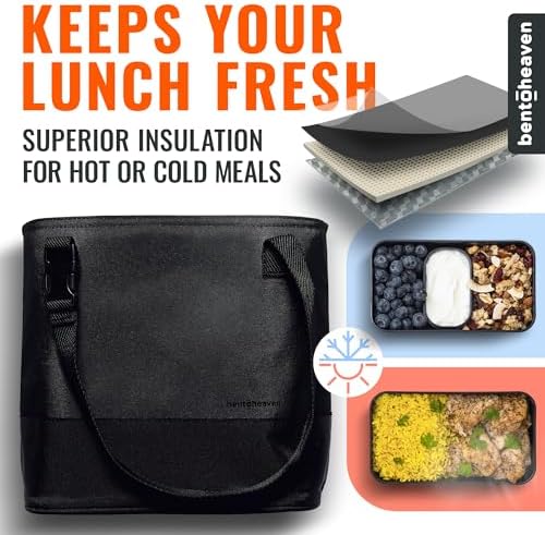 Bentoheaven Insulated Lunch Tote for Work - Durable Materials, Variable Strap/Handle, Wide Opening - Cooler Lunch Bag for Women & Men - Fits all major Bento Lunch Boxes and Other Containers (Black)