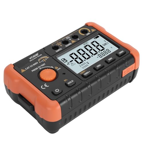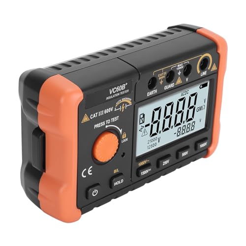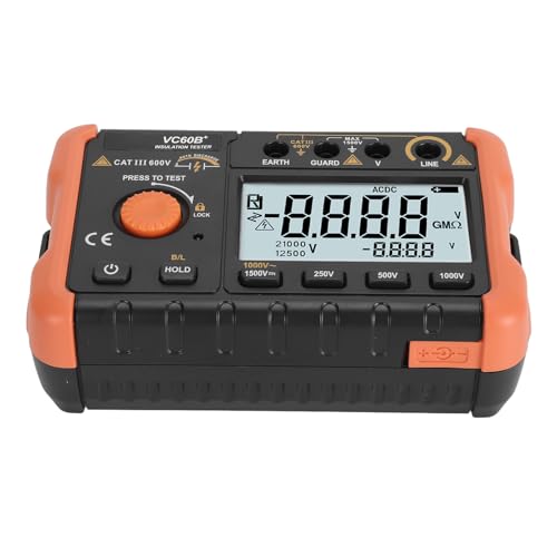 - LCD Backlight Display: Megohmmeter has a high definition LCD display,maximum (60B+: 5000) character display, clear writing, no parallax, with unit symbol display and white backlight, can be use at night or in the dark.
