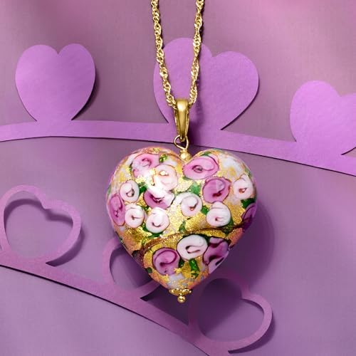 Ross-Simons Italian Multicolored Murano Glass Rose Heart Adjustable Pendant Necklace in 18kt Gold Over Sterling