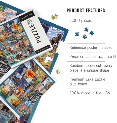 - 18.5 x 27.75 inches Lantern Press 1000 Piece Jigsaw Puzzle, American Road Trip, Collage