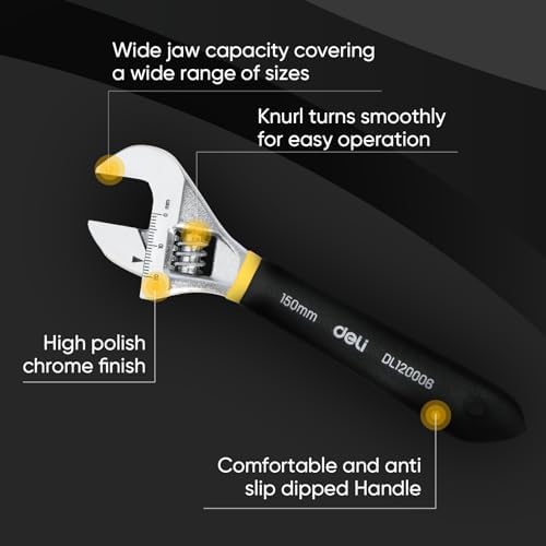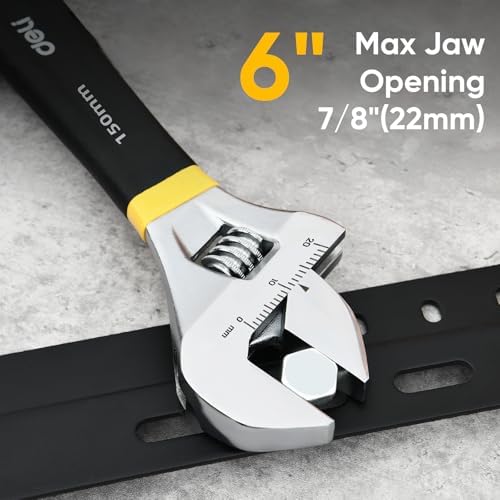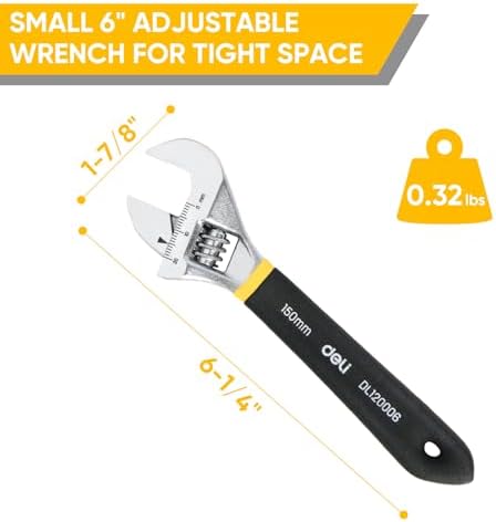 deli 6" Adjustable Wrench Heavy-Duty Chrome Anti-Slip Grip, Smooth-Jaw, Cr-V Steel, Wide Opening for Plumbing & DIY