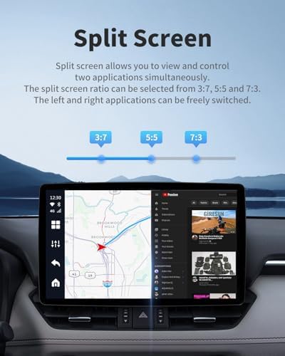 • Diverse Apps & Split-Screen Viewing: Enjoy your favorite content with access to a wide range of apps for videos (YouTube, Netflix) and navigation (Google Maps). The split-screen function allows for simultaneous viewing, so entertainment and navigation can coexist!