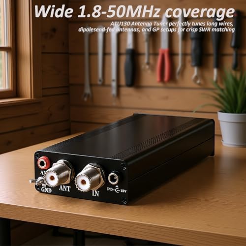 - Wide 1.8-50MHz Coverage: Antenna tuner perfectly tunes long wires, dipoles, end-fed antennas, and GP setups for crisp SWR matching, ideal for a wide range of shortwave operations, designed for ham radio enthusiasts, preppers, and field operators