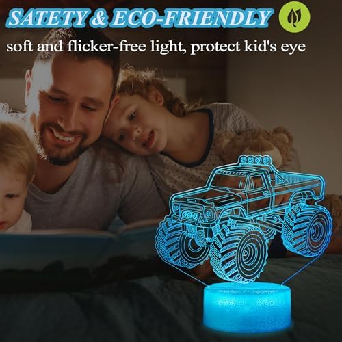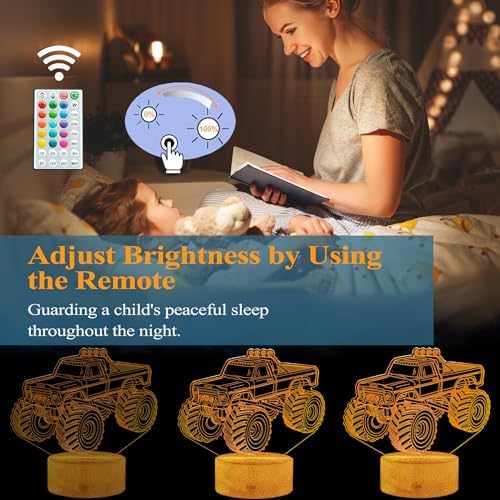 Monster Truck Night Light, Monster Truck Gifts, 3D Illusion Lamp with 16 Colors Changing, Remote Control with Timer, Dimmer, Kids Room Decoration for Holiday Birthday Christmas