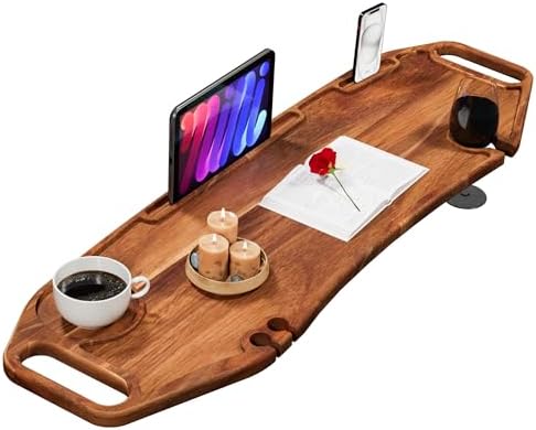 • ✅Functional Design: Features dedicated slots for your phone and iPad, tablets along with two grooves to securely hold wine glasses or your favorite beverages, adding a touch of luxury to your bathing ritual.