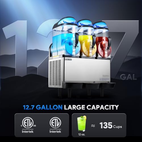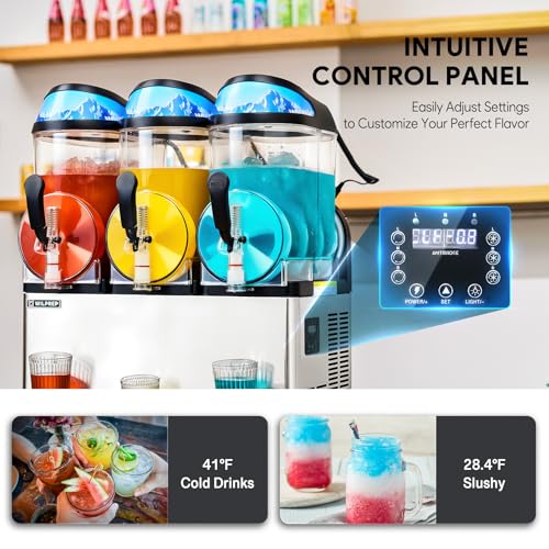 - Serve a Large Crowd: With three 4.2-gallon (16L) tanks, our commercial slush machine is perfect for serving a variety of seasonal drinks at bars, food trucks, restaurants, cafes, and events
