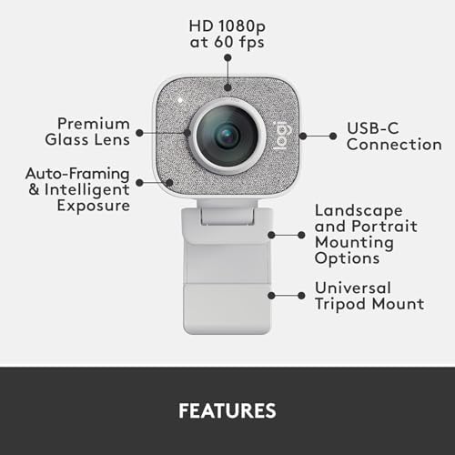 Experience the ultimate in live streaming and video recording with the Logitech StreamCam, designed to deliver full HD 1080p at 60 fps for smooth, natural motion and crystal-clear visuals. Equipped with a premium glass lens and smart auto-focus system, the StreamCam captures vibrant, true-to-life details with exceptional clarity, ensuring that every shot is rich in color and texture. Its intelligent auto-framing technology keeps you perfectly centered, even as you move during a presentation or live session, while the intelligent exposure feature adjusts lighting automatically so you always look your best, regardless of the environment. Whether you're streaming to Twitch, YouTube, or using live streaming software like OBS, XSplit, or Streamlabs OBS, this camera is optimized for seamless integration with popular platforms. The StreamCam is built for versatility, offering multiple mounting options that allow you to use it in landscape or portrait orientation. Mount it directly on your monitor or set it up on a standard tripod to achieve the perfect framing for any scenario. The high-bandwidth USB-C 3.1 connection, with a 5-foot cable included, ensures a stable and reliable link for uninterrupted HD video streaming and recording. Additionally, enhanced control is at your fingertips with Logitech Capture software, which allows you to automate focus, exposure, and other advanced settings. This software gives you full customization over your streaming setup, letting you fine-tune performance based on your unique needs. With its combination of high-quality imaging, intelligent features, and versatile mounting and connectivity options, the Logitech StreamCam is an ideal tool for content creators who demand both professional-level performance and ease of use in every live session and recording.This Bundle Includes:Logitech StreamCam Premium for Creators Webcam - WhiteScreen Cleaning KitCleaning Kit