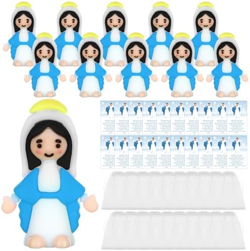 • Package includes--You will receive 50 pcs mini Virgin Mary figures, 50 pcs virgin mary cards and 50 pcs organza bags. Perfect for Sunday school crafts,religious parties and other holiday events.