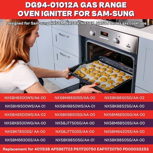 - COMPATIBLE WITH SERIES -- This igniter is designed for Sam-sung NX58M, NX58H, NX58K, NX58J series gas cooktops, NX58H9500WS/AA-00, NX58H9500WS/AA-01, NX58H9500WS/AA-02, NX58K9500WG/AA-00, NX58K7850SS/ AA-00, NX58M6630SS/AA-00, NX58M6630SS/AA-00, NX58H9950WS/AA-01, NX58J7750SG/AA-00, NX58J7750SS/AA-00. Replacement for 4011538 AP5967723 PS11720750 EAP11720750 PD00033253, etc., please check compatibility with your specific model to ensure performance