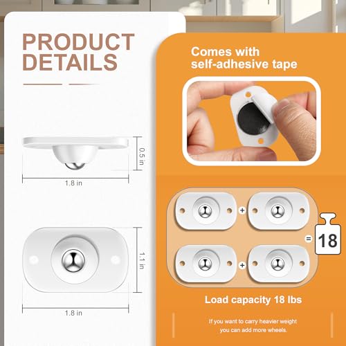 - Load-Bearing: The four single-bearing wheels can support up to 18 pounds combined. You can add more wheels as needed. Not recommended for use on white quartz countertops