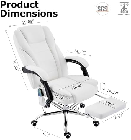 Reclining Massage Office Chair with Footrest, High Back Ergonomic Executive Chair with Heating and Vibration Function(White)