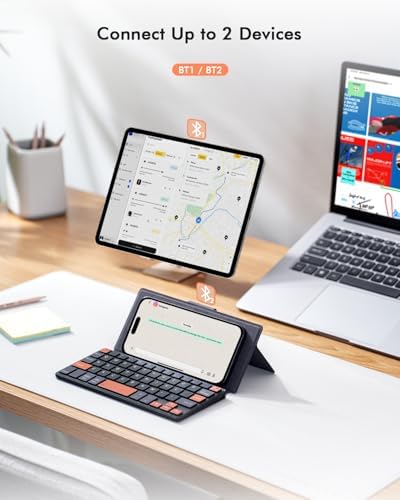Doohoeek Universal Bluetooth Mini Keyboard, Wireless Compact Keyboard with Orange Navigation Keys & Any-Angle Stand for Android/iOS/Windows, Dual-Device Keypad for Phones/Galaxy Z Fold/iPad mini