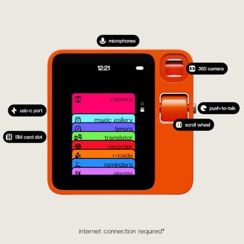 • AI-Powered Vision: The rotating camera is built for a new AI camera experience, so we’ve kept it simple. Point it at an object and learn all about it or snap a quick photo to generate a fun AI-generated version of it. For professional-level photography or zoom capabilities, use another camera; for intelligent AI vision, use r1.