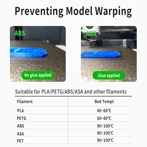 - 【Wide Compatibility】 This 3d printing adhesive bambu Adapts to a variety of materials like PLA/ABS/PETG/TPU etc. The hot bed glue works well on mutiple printing platforms like low-temperature/high temperature/smooth/frosted/glass/PEI/metal build plates etc.