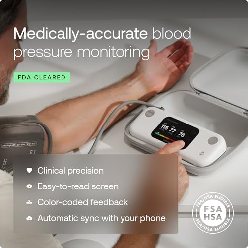 Withings BPM Vision – Clinical accuracy. Crytal-clear insights. Withings BPM Vision is an FDA-cleared digital blood pressure monitor for home use that delivers precise systolic & diastolic measurements, heart rate tracking, and instant color-coded feedback—all displayed on a 2.8” high-resolution LCD screen. Your results are immediately visible, making health tracking effortless. Easy-to-Read Results with Instant Clarity Forget complicated readings. BPM Vision uses a color-coded system making it easy to understand your cardiovascular health. The colors align with recognized US hypertension levels, so no medical expertise is needed. On-Screen Tutorials: Accurate Readings Guaranteed Get accurate readings every time with BPM Vision. Built-in tutorials guide you through proper positioning and technique, so you can trust every measurement. Designed for Convenience & Portability The protective case doubles as a stand, ensuring the optimal reading angle, while the interchangeable cuff ensures a perfect fit for most adult arm sizes. Unlimited Data Storage & Smart Connectivity Sync effortlessly via Wi-Fi or Bluetooth to the Withings app, where you can store unlimited measurements, track trends over time, and share reports with your doctor. 1-Year Battery Life – No Recharging Needed A single charge lasts up to 12 months, so you can focus on your health without worrying about constant recharging.