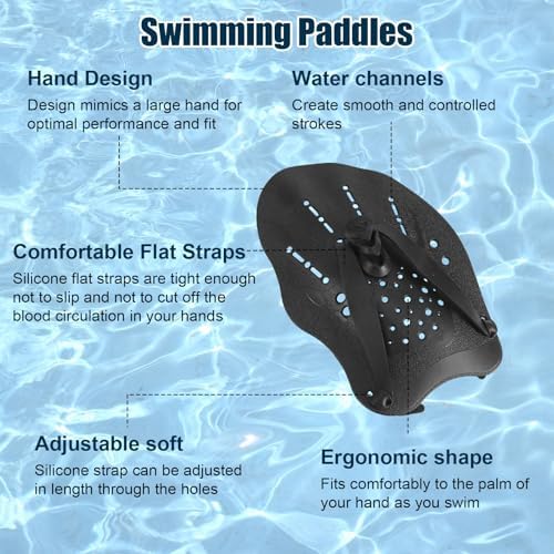 • Wide Application: The hand paddles help you practice swimming, such as free swimming, breaststroke and butterfly. Perfect for swimming beginners to improve swimming skills and enhance arms. Making them a versatile choice for any swimmer.