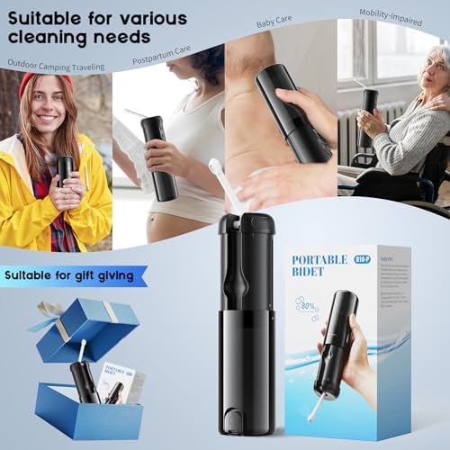 - Multi-Scene Use - Our portable electric bidet is designed for flexible use and is perfect for postpartum care, postoperative hygiene, and elderly care.Designed for portability and leak prevention, this bidet ensures you stay clean and comfortable wherever you go. It's an ideal choice for travelers, postpartum mothers, and individuals with limited mobility.