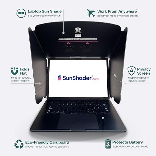 - SunShader is the laptop sun shade to see your screen clearly in direct sunlight. SunShader keeps your laptop cool and your work private, in public!