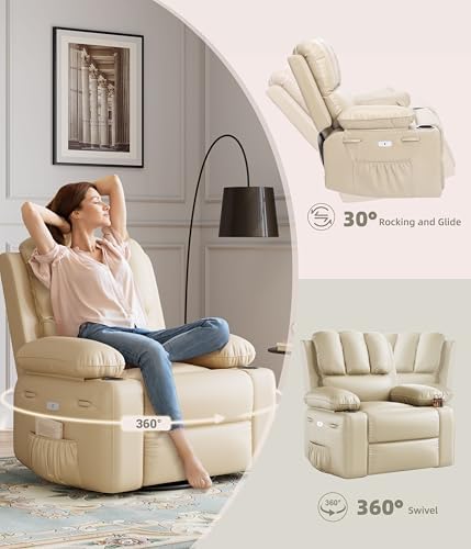 - [VERSATILE USE] GarveeHome Electric Recliner Chair Equipped with heating and vibration functions to relieve fatigue during prolonged sitting; 270° swiveling and 30° rocking to customizable comfort; Ideal for watching TV, gaming, caring for kids, or giving as a thoughtful gift