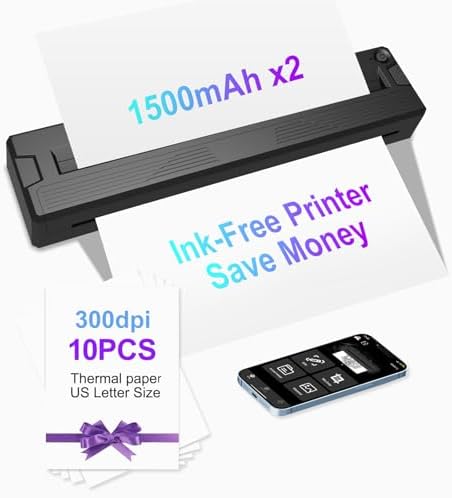 - Ink-Free Printer [Inkless Printing Technology]: This Bluetooth printer operates with thermal technology, eliminating the need for ink, toner, or ribbons, and thereby avoiding any ink-related clogs or cleaning problems. Simply replace the thermal paper when needed; each sheet costs just $0.09, making it more economical than ink cartridges plus paper. (Please note: Unlike conventional printers, this device requires specialized thermal paper for operation and does not support regular copy paper)