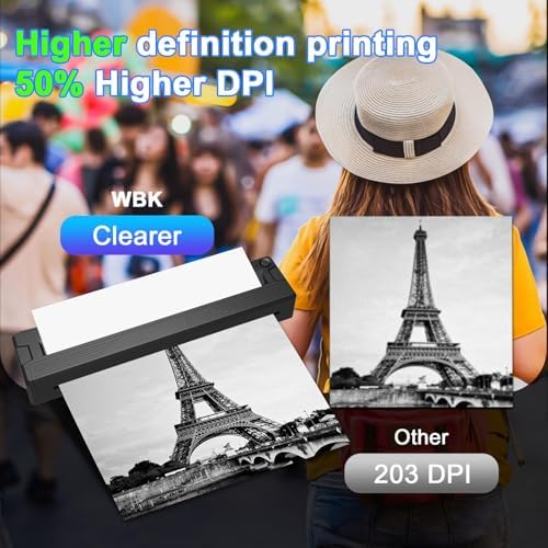 wbk Portable Printers Wireless for Travel, Thermal Inkless Printer Support 8.5" X 11" US Letter&Legal,A4&A5 Thermal Paper,Bluetooth Wireless Mini Printer Compatible with Android