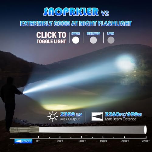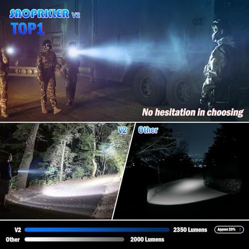 - [Professional-Grade Brightness] Unleashes 2350 lumens (120,000cd) of dazzling light - brighter than a police helicopter searchlight. See through the dark wilderness like daylight, spot everything at 750 yards (≈7 football fields!)