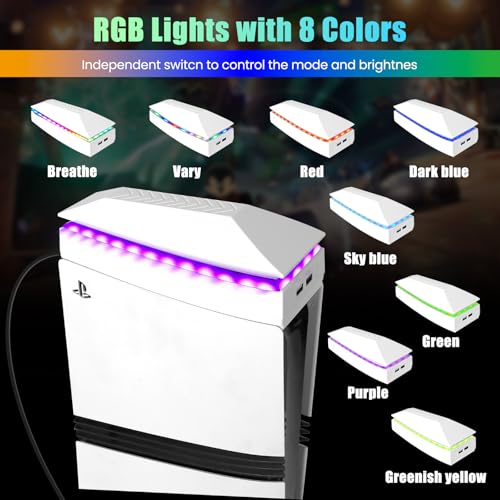 • Colorful Lights: The PS5 pro cooling fan supports colorful lights, and the color of the lights can be changed through an independent touch switch. You can use the independent touch switch to change the color you like and have more atmosphere during the game.
