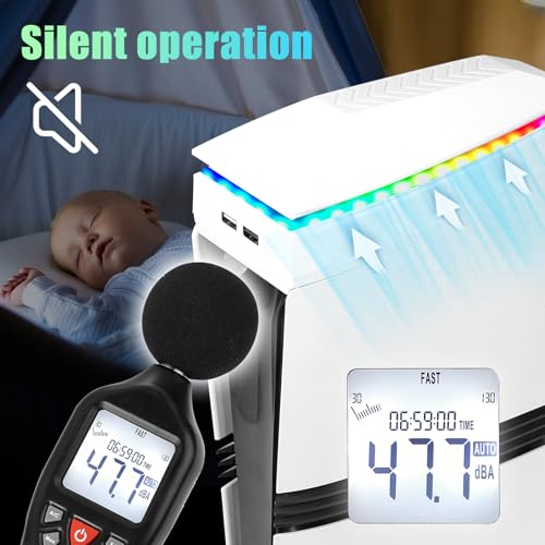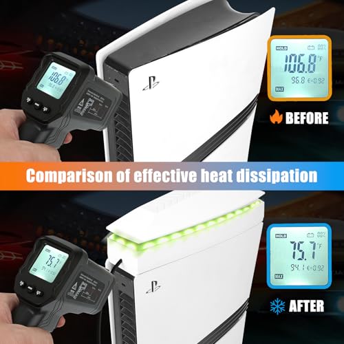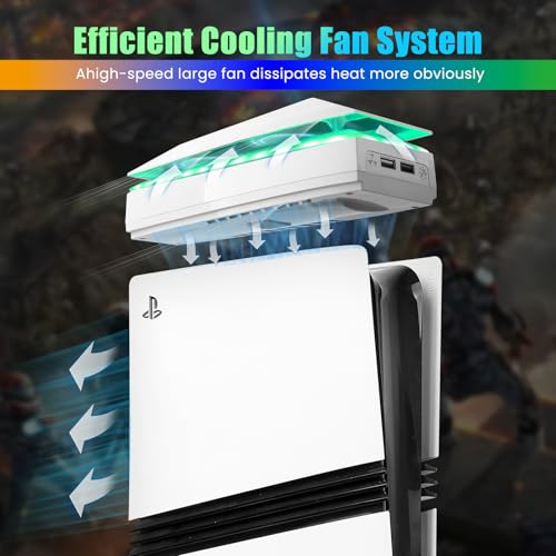Console Cooling Fan with Dust Cover Colorful LED Light for PS5 Pro Console Disc Edition & Digital Edition Silent Absorb Fan Cooler with 2 USB Port PlayStation 5 Pro Cooling System