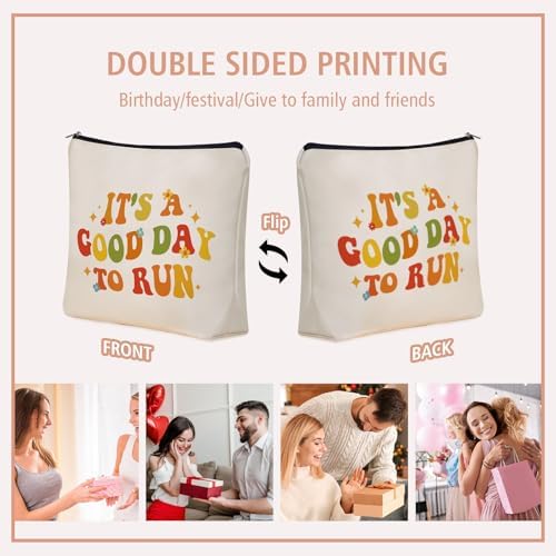 Running Christmas Gifts Makeup Bag: Cute Cosmetic & Toiletry Pouch It's a Good Day To Run For Girls & Womens Runner, Nieces, Girlfriends, Mom, Coworkers.Ideal Gift for Travel, Birthday