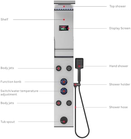 • With LED lights and temperature display, our Shower Tower offers easy control over your shower experience. Adjust the water flow and temperature to your liking, providing a personalized and enjoyable shower every time.