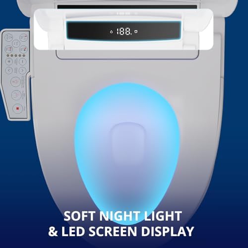 Electric Smart Toilet Seat, Upgraded Heated Bidet with Adjustable Instant Warm Water and Warm Dryer, Night Light, Slow Close Lid (Elongated (Side Arm Control))