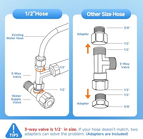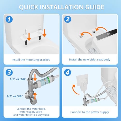 - Universal Fit, Effortless Install: Our electric bidet toilet seat features a standard 1/2 inch tee fitting and two 1/2" - 3/8" adapters,Please note that the tee fitting should be installed on the water supply valve, and please confirm that the size of your water supply valve interface is 1/2" or 3/8".