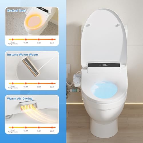 - Advanced Instant Heat Technology: enjoy hot water in just 3 seconds. Adjust the water temperature across multiple settings to suit any season. The drying feature is even more impressive. With multiple warm air temperature options and an innovative air duct that delivers strong airflow, bidet toilet seat dries 60% faster, leaving you dry and comfortable in no time.