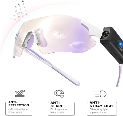 - 【Sleek & Stylish Design】 Available in a bold purple and white color, these cycling sunglasses combine sporty style with practicality. The complete package includes: 1 pair of glasses, 1 camera, 3 pairs of interchangeable nose pads, 2 cleaning cloths, 1 USB cable, 1 64GB memory card, and 1 user manual. Everything you need to get started, right out of the box.