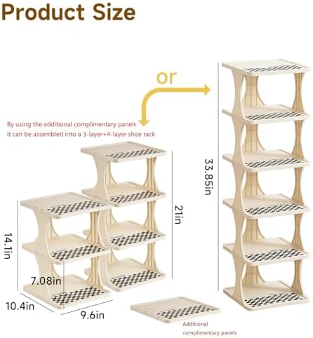 - 【Easy Assembly and Disassembly】: Quickly snap together this shoe shelf in minutes without tools. The modular design allows configuration as a single unit or stacked system. Disassemble effortlessly for seasonal storage or relocation, making it ideal for renters and dorm rooms.