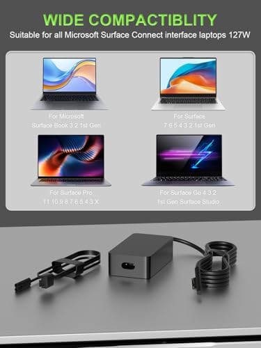 127W 102W Charger Compatible with Microsoft Surface Laptop Studio/Go 1 2 3 Book 3 2 1/Surface Laptop 7 6 5 4 3 2 1 Surface Pro 10 9 8 7 7+ 6 5 4 3 X Windows Charging Adapter