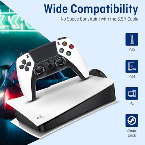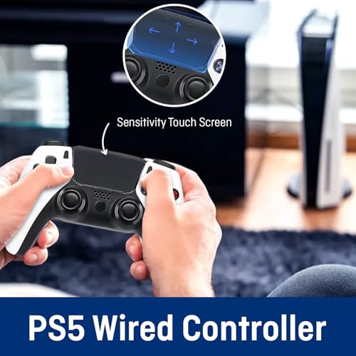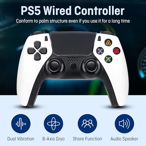 Wilcoapr24 Wired Controller Compatible with PS5 Consoles / Ergonomic Design, Vibration Feedback, LED Light, Long Cable Plug and Play for Gaming Experience.