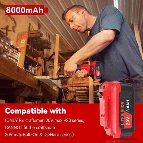- 【Replacement For】Compatible with V20 lithium ion battery CMCB204 CMCB202 CMCB201 CMCB206.(Note: CANNOT fit Craftsman 20V Diehard and Bolt-On series ).Compatible with V20 Cordless Drill Combo Kit CMCK401D2 CMCK200C2, V20 Cordless Lopper CMCCSL621D1