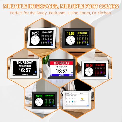 - PLACE ANYWHERE: This Digital Calendar Day Clock Has Several Different Display Ways, Choose Your Favorite Way and Place It on The Desktop of Your Kitchen, Bedroom and Bathroom, In Addition to Reading the Time, Date Clearly, It's Also a Great Decorative Piece for Different Home Styles.