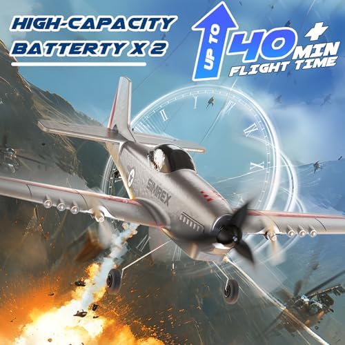 SIMREX RC Plane for Kids - 2.4GHz 3-Channel Remote Control Airplane Toy with 6-Axis Gyro, 2 Speeds, 2 Batteries, P51 RC Airplane, Foam Glider - Gift for Boys & Girls