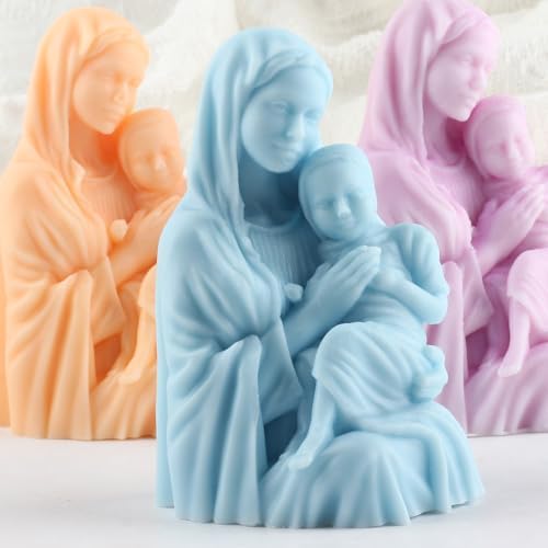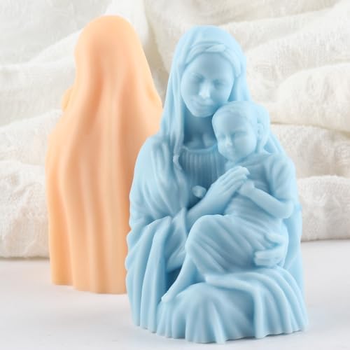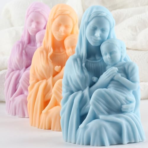 Virgin Mary Silicone Candle Mold Blessed Godmother with Baby Jesus Resin Casting Silicone Molds for Candles Making Aromatherapy Candles Wax Polymer Clay Home Decoration